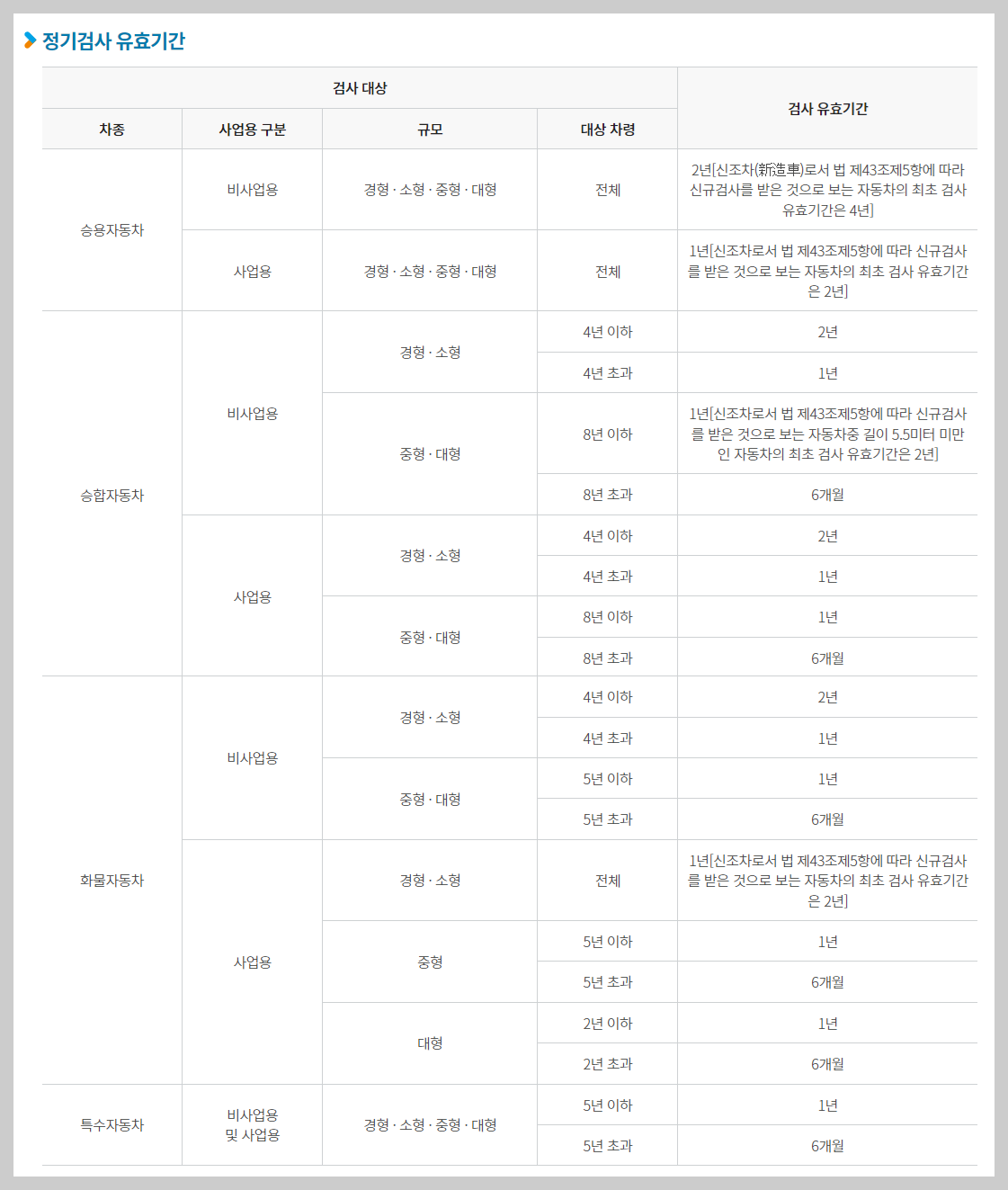 ▶정기검사 : 신규등록 후 4년 후, 이후 2년마다 정기적으로 실시하는 검사