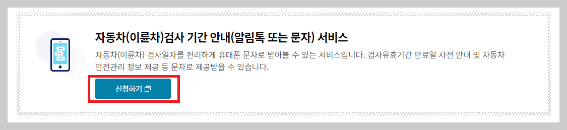 2. 자동차(이륜차) 검사 기간 안내(알림톡 및 문자) 서비스 신청하기 클릭